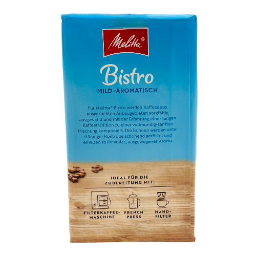 Melitta Bistro Mild Aromatischer Mahlkaffee bringt die authentische deutsche Kaffeetradition in Ihre Küche. Diese sorgfältig gemischte Mischung aus Arabica- und Robusta-Bohnen wird nach den bewährten Qualitätsstandards von Melitta hergestellt, die seit der Erfindung des Kaffeefilters im Jahr 1908 entwickelt wurden. Die leichte bis mittlere Röstung bewahrt die natürlichen Geschmacks- und Aromastoffe, ohne sie zu überlagern.