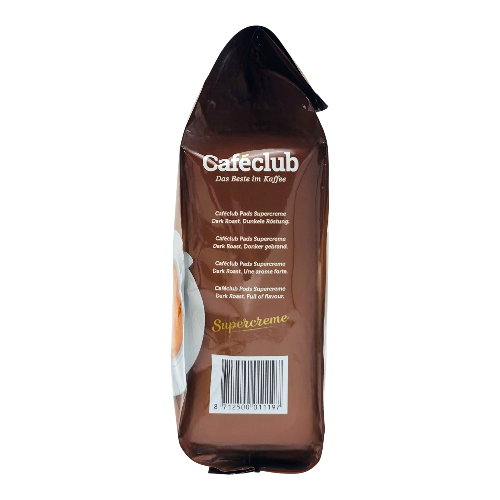 Cafeclub Supercream Dark Roast coffee pods combine carefully selected Arabica and Robusta beans from Africa, Asia and South America. The dark roast brings out natural oils for an intense flavor experience. Each pad is individually wrapped to ensure freshness, compatible with all common pad coffee machines.