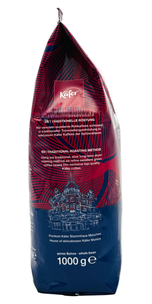 Käfer hat diese hochwertige Mischung aus Arabica- und Robusta-Bohnen aus Afrika, Asien und Südamerika ausgewählt. Die mittlere Röstung unterstreicht die natürlichen Aromen und erzeugt die unverwechselbare, samtige Crema. Seit 1930 steht Käfer für kulinarische Raffinesse und Handwerkskunst, was sich in dieser sorgfältig hergestellten Kaffeemischung widerspiegelt.