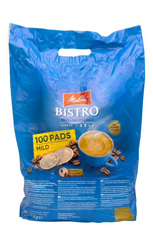 Discover the smooth elegance of Melitta Bistro Mild Aromatic Coffee Pads. This premium blend of Arabica and Robusta beans delivers a perfect balance of notes and chocolate in every cup. With 100 biodegradable pads, you'll enjoy weeks of consistent quality and mild, aromatic coffee ideal for daily use in your pad coffee machine.